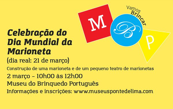 Vamos Brincar – Celebração do Dia Mundial da Marioneta (dia real: 21 março) Construção de uma marioneta e de um pequeno teatro de marionetas Atividade desenvolvida pelo Museu ...Cultura -