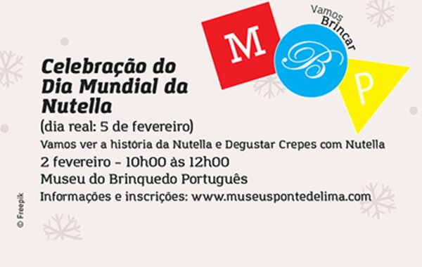 Vamos Brincar – Celebração do Dia Mundial da Nutella Atividade desenvolvida pelo Museu do Brinquedo Português para crianças até aos 12 anos de idade. Regras: As inscrições ...Cultura -