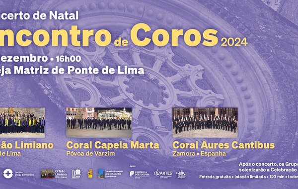 A 15 de dezembro 2024 às 16h00, na Igreja Matriz de Ponte de Lima, Concerto de Natal | Encontro de Coros 2024. Alinhamento Historial e Curriculum: Coral Aures ...Cultura -