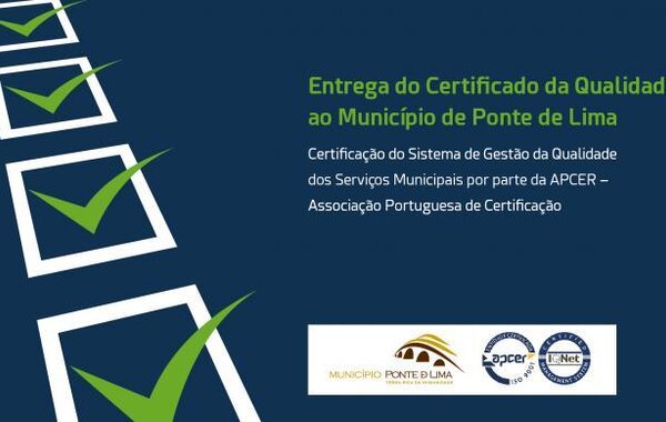 Município de Ponte de Lima obtém Certificado da Qualidade nos Serviços Municipais | Entrega do Certificado de Conformidade – 9 de agosto – 11 horas