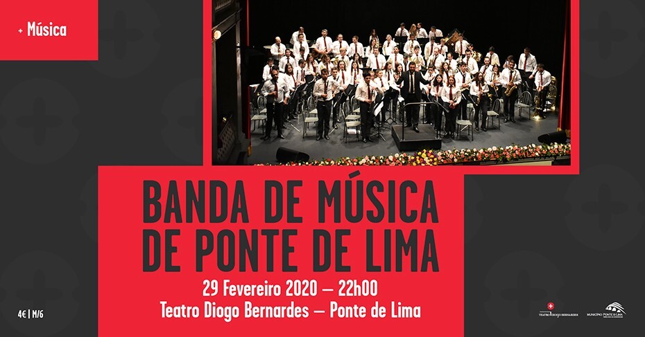 A 29 de fevereiro, às 22h00, no Teatro Diogo Bernardes, em Ponte de Lima, Concerto pela Banda de Música de Ponte de Lima - primeiro de quatro concertos a realizar pelas Bandas Filarmónicas do Concelho de Ponte de Lima, no Teatro Diogo Bernardes, em 2020.