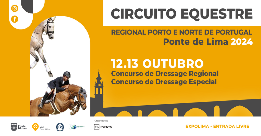 Ponte de Lima recebe nos dias 12 e 13 de outubro o Circuito Equestre Regional Porto e Norte de Portugal, com os seguintes concursos: