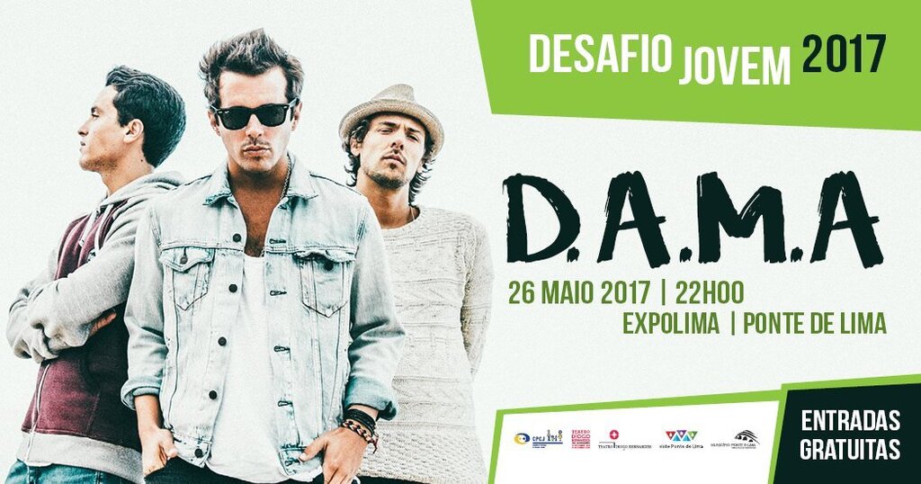 A 26 de Maio, às 22h00, no âmbito do Desafio Jovem 2017, na Expolima, em Ponte de Lima, com entradas gratuitas, concerto dos D.A.M.A.