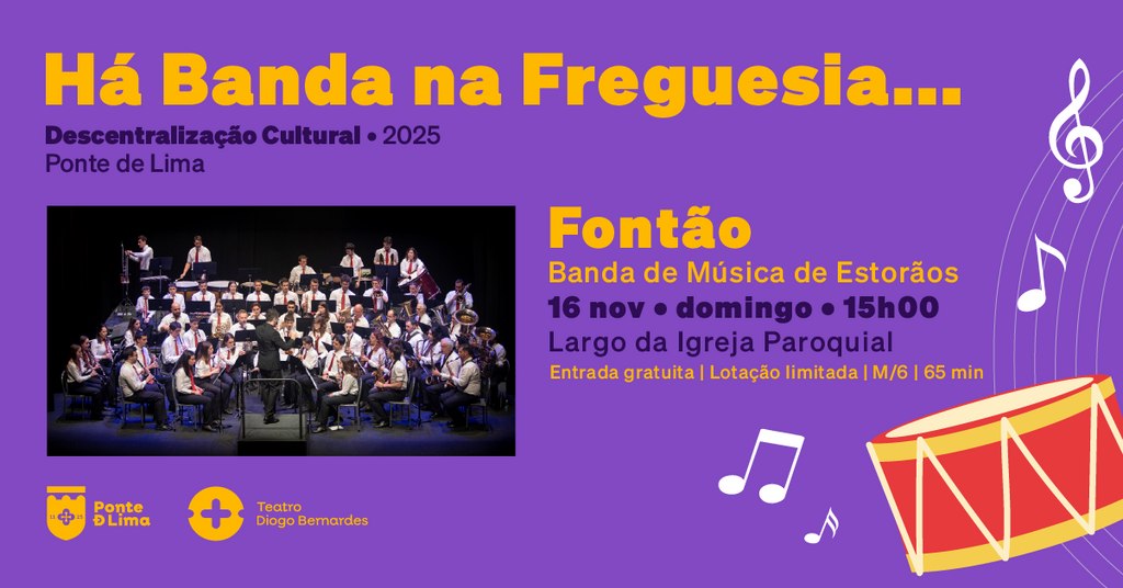 A 16 de novembro, às 15h00, Há Banda na Freguesia... de Fontão, pela Banda de Música de Estorãos, com entradas gratuitas.