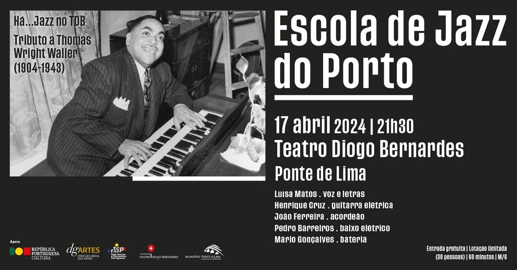 No dia 17 de abril de 2024, às 21h30, o Teatro Diogo Bernardes, em Ponte de Lima, apresenta o espetáculo de jazz, Há... Jazz no TDB – Tributo a Thomas Wright Waller, pela Escola de Jazz do Porto.