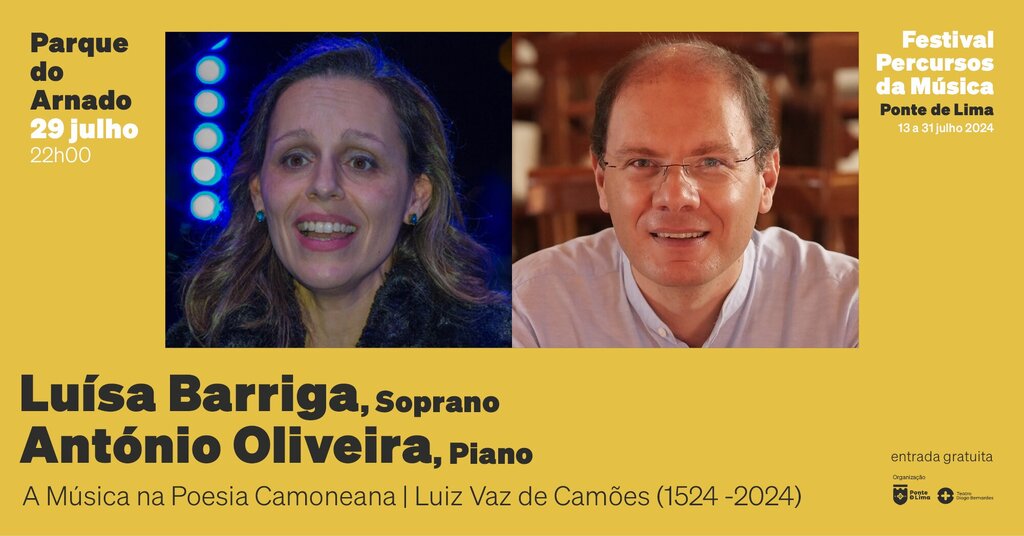 O recital de celebração dos 500 anos do nascimento de Luís de Camões (1524-2024) é composto por canções de vários compositores portugueses (Luiz de Freitas Branco, Óscar da Silva, Croner de Vasconcelos, Lopes-Graça, Joly Braga Santos e Rui Soares da Costa) sobre poemas do insigne poeta é de grande importância cultural e artística para o nosso panorama musical português. A soprano Luísa Barriga e o pianista António Oliveira irão fazer uma viagem musical através das canções com poesia de sonetos e redondilhas do grande poeta português com música do séc. XIX até aos nossos dias.