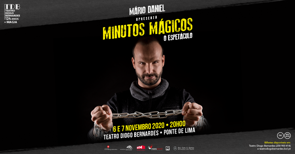 A 6 e 7 de novembro, às 20h00, Mário Daniel apresenta, no Teatro Diogo Bernardes em Ponte de Lima, "Minutos Mágicos - O Espetáculo".