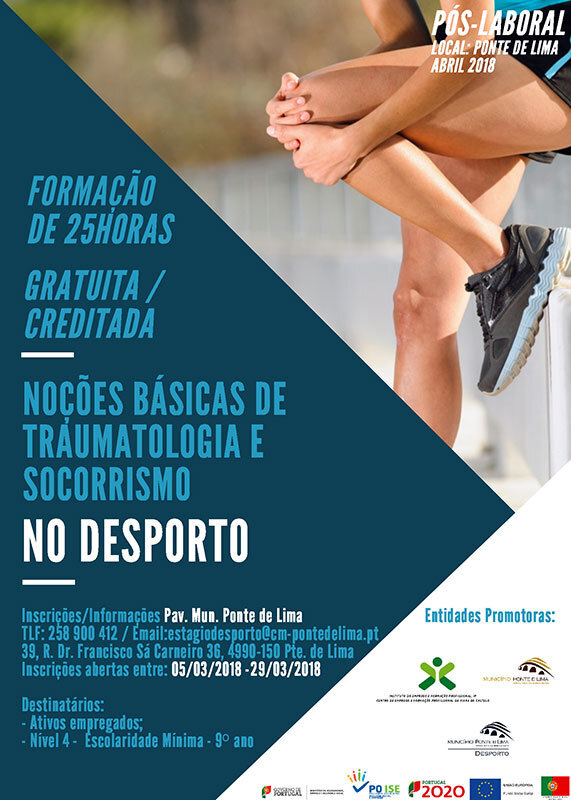 O Município de Ponte de Lima e o Instituto do Emprego e Formação Profissional vão promover uma formação pós-laboral de 25 horas de "Noções Básicas de Traumatologia e Socorrismo no Desporto", para ativos empregados com o 9.º ano de escolaridade miníma.
