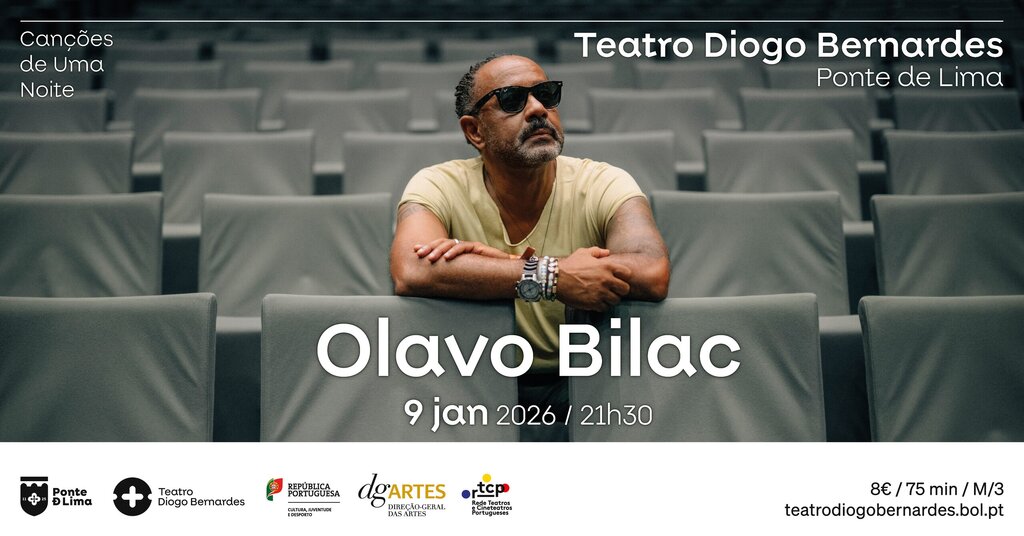 O Município de Ponte de Lima apresenta, no dia 9 de janeiro de 2026, às 21h30, no Teatro Diogo Bernardes, o espetáculo de música, Olavo Bilac "Canções de Uma Noite".