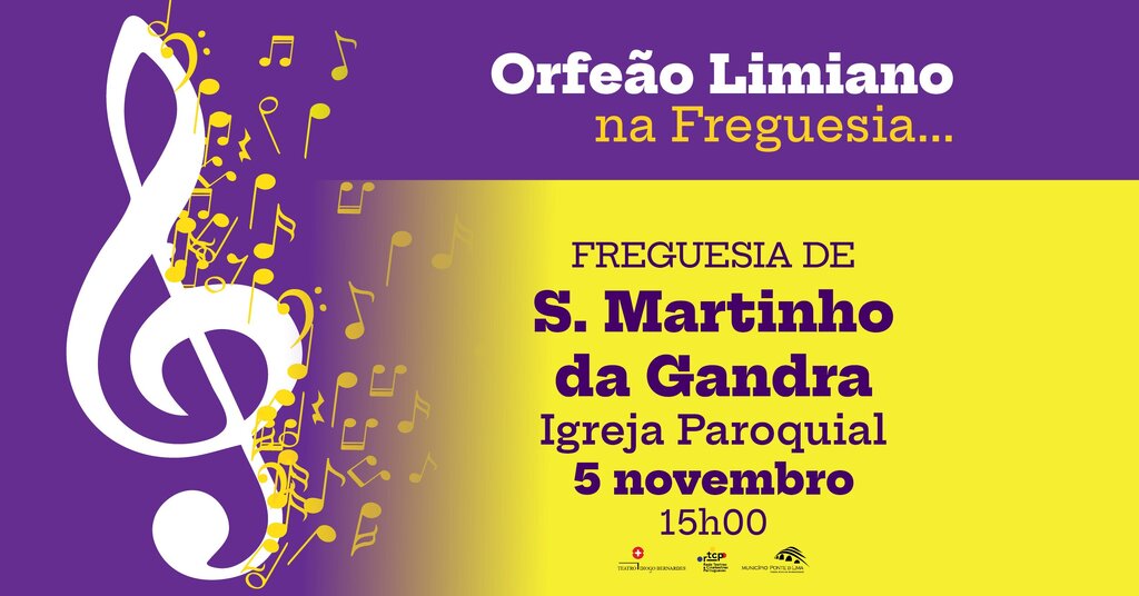 A 5 de novembro, às 15h00, concerto do Orfeão Limiano na Freguesia de S. Martinho da Gandra, com entradas gratuitas.