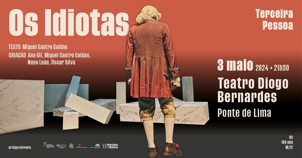 No dia 3 de maio de 2024, às 21h30, o Teatro Diogo Bernardes em Ponte de Lima, apresenta o espetáculo de Teatro "Os Idiotas” | Terceira Pessoa.