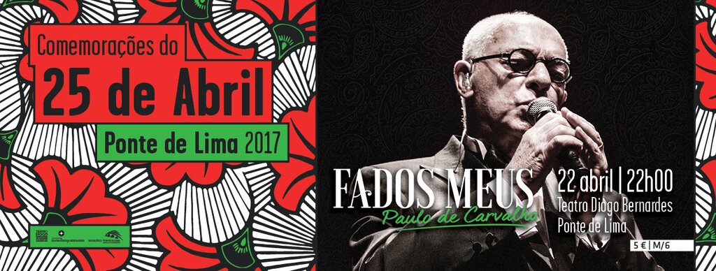 A 22 de Abril, às 22h00, no Teatro Diogo Bernardes, em Ponte de Lima, integrado nas Comemorações do 25 de Abril, concerto de Paulo de Carvalho | Fados Meus.