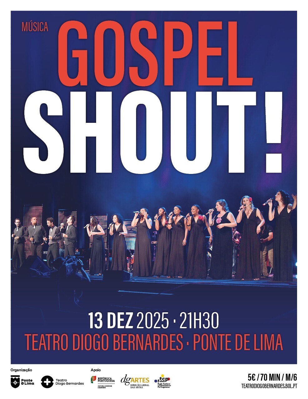 No dia 13 de dezembro de 2025, às 21h30, o Município Ponte de Lima apresenta no Teatro Diogo Bernardes, o espetáculo de música/gospel, "SHOUT!”.