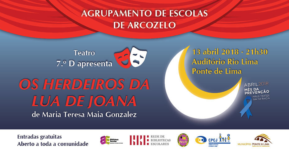 Peça de teatro "Os Herdeiros da Lua de Joana", dinamizada pelos alunos do Agrupamento de Escolas de Arcozelo (turma D do 7º ano), integrada no Mês da Prevenção dos Maus-Tratos na Infância.