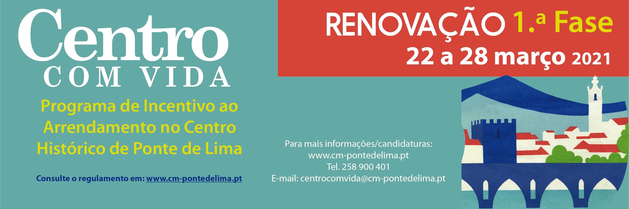 O Programa Centro Com Vida é uma iniciativa do Município de Ponte de Lima que visa incentivar o arrendamento no Centro Histórico, com três períodos de candidatura por ano, março, junho e outubro.
