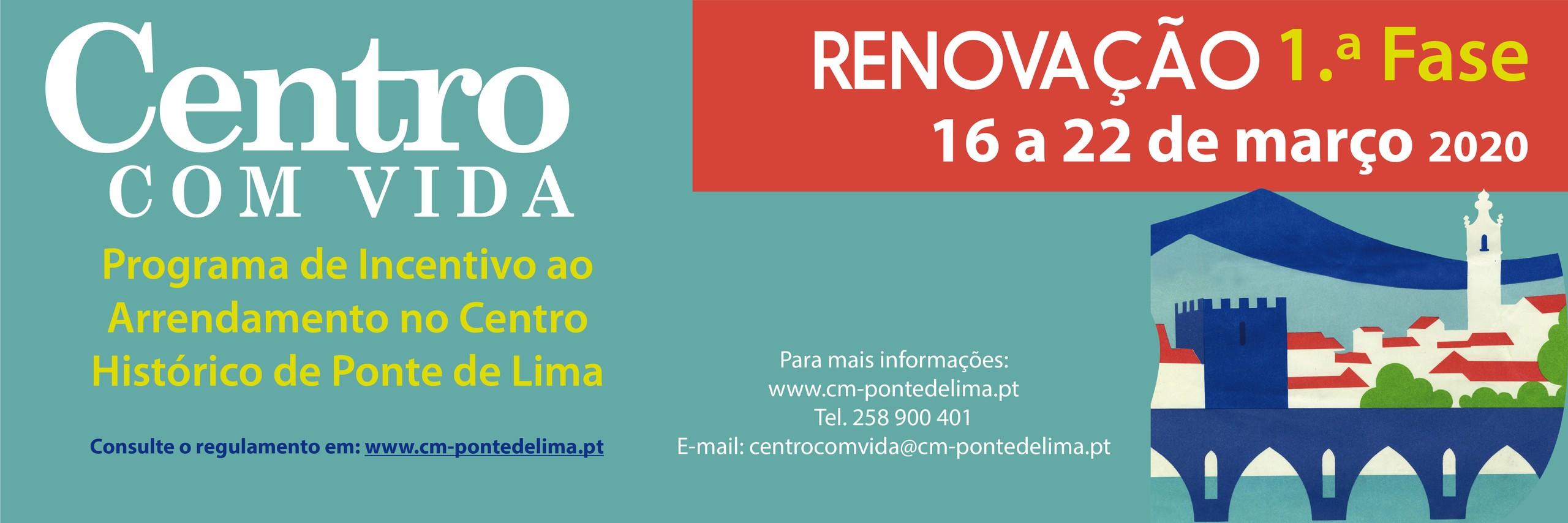 O Programa Centro Com Vida é uma iniciativa do Município de Ponte de Lima que visa incentivar o arrendamento no Centro Histórico, com três períodos de candidatura por ano, março, junho e outubro.