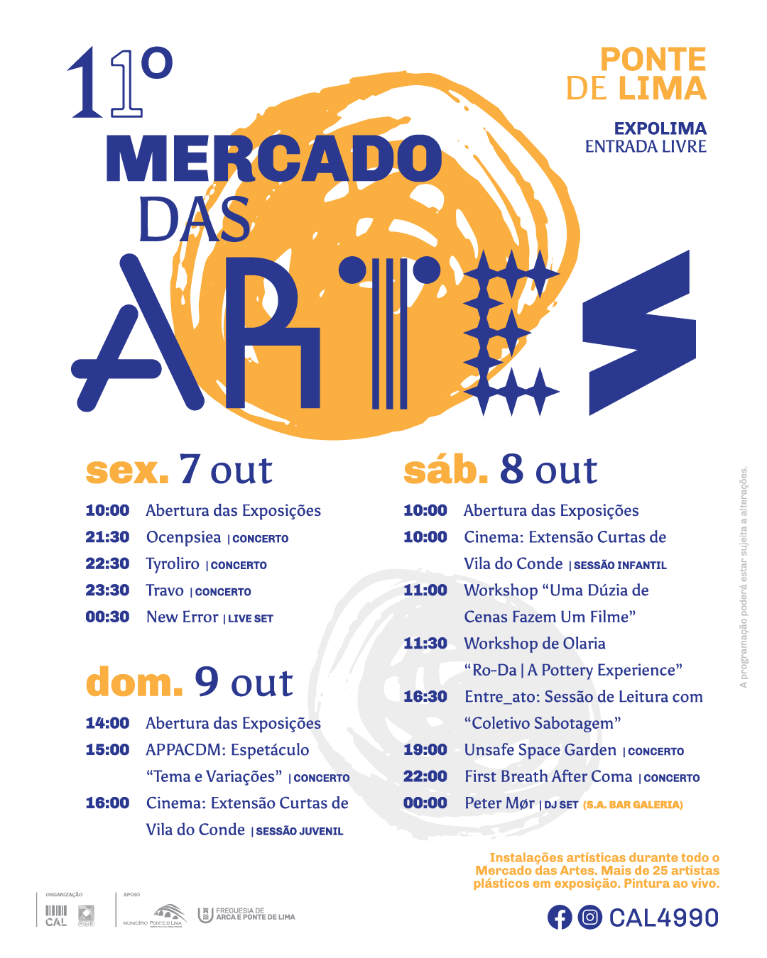 O 11.º Mercado das Artes decorre durante os dias 7, 8 e 9 de outubro na Expolima em Ponte de Lima, promovendo a arte nas suas mais diversas formas, através de exposições, performances, concertos, workshops, venda de arte, entre outros!