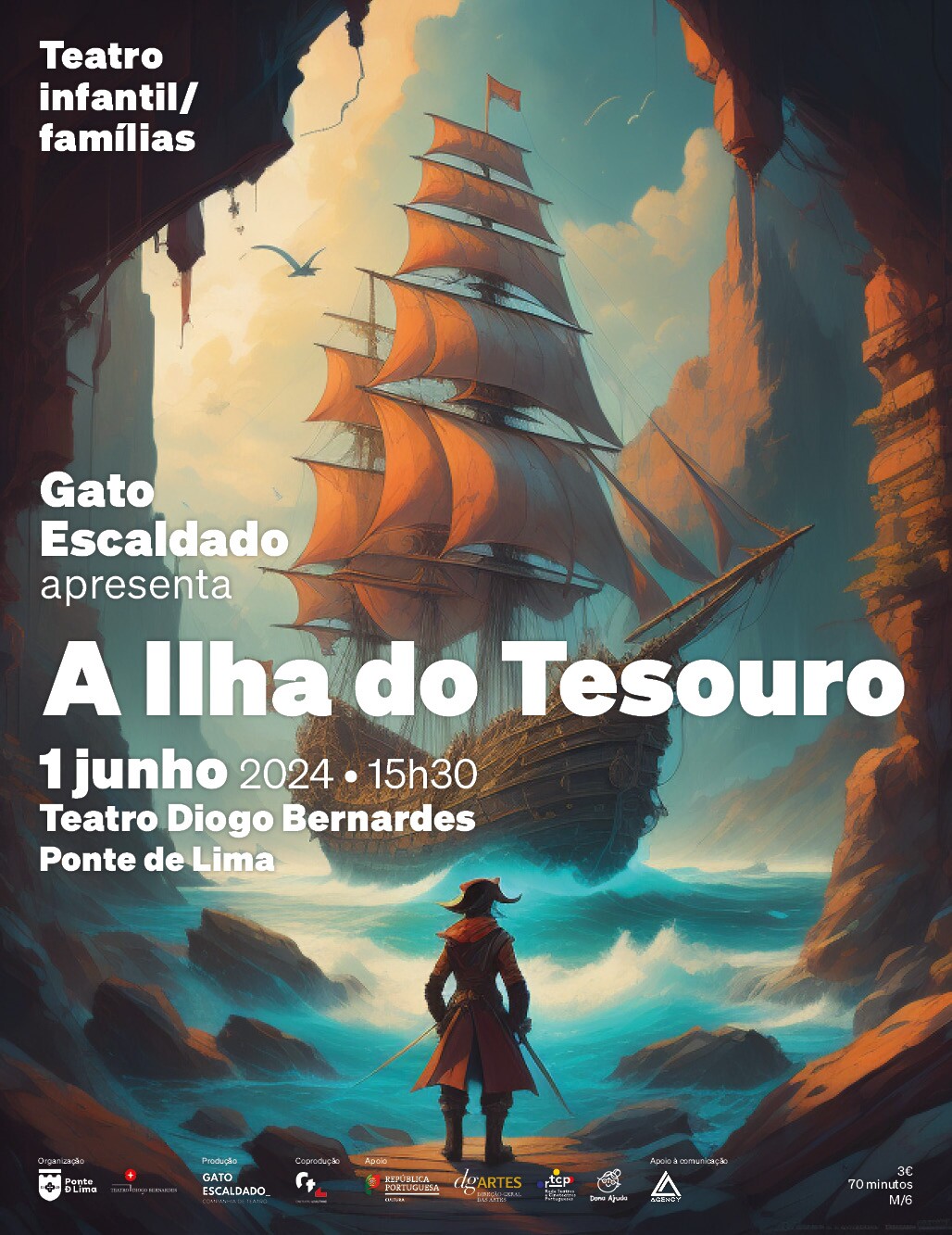 No dia 1 de junho de 2024, às 15h30, o Teatro Diogo Bernardes em Ponte de Lima apresenta o espetáculo de Teatro infantil / Famílias "A Ilha do Tesouro” | Gato Escaldado.