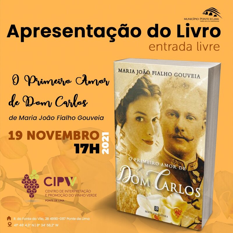 O Município de Ponte de Lima acolhe a apresentação do livro "O primeiro amor de Dom Carlos", da autoria de Maria João Fialho Gouveia, no próximo dia 19 de novembro, às 17h00, no Centro de Interpretação e Promoção do Vinho Verde.