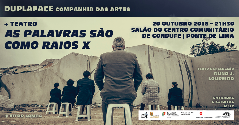 A 20 de outubro, às 21h30, no Salão do Centro Comunitário de Gondufe, com entradas gratuitas, "As Palavras São Como Raios X", com Texto e Encenação de Nuno J. Loureiro, pelo Duplaface Companhia das Artes.
