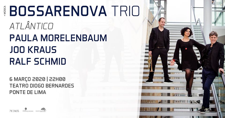 A 6 de Março, no Teatro Diogo Bernardes, em Ponte de Lima, Bossarenova Trio, composto por Paula Morelenbaum, a grande voz da Bossa Nova do Brasil, que integrou a Banda Nova de Tom Jobim, com quem trabalhou durante dez anos e dois músicos excepcionais Alemães – o conceituado pianista Ralf Schmid e Joo Kraus, um dos melhores trompetistas europeus na actualidade –, apresenta Atlântico.