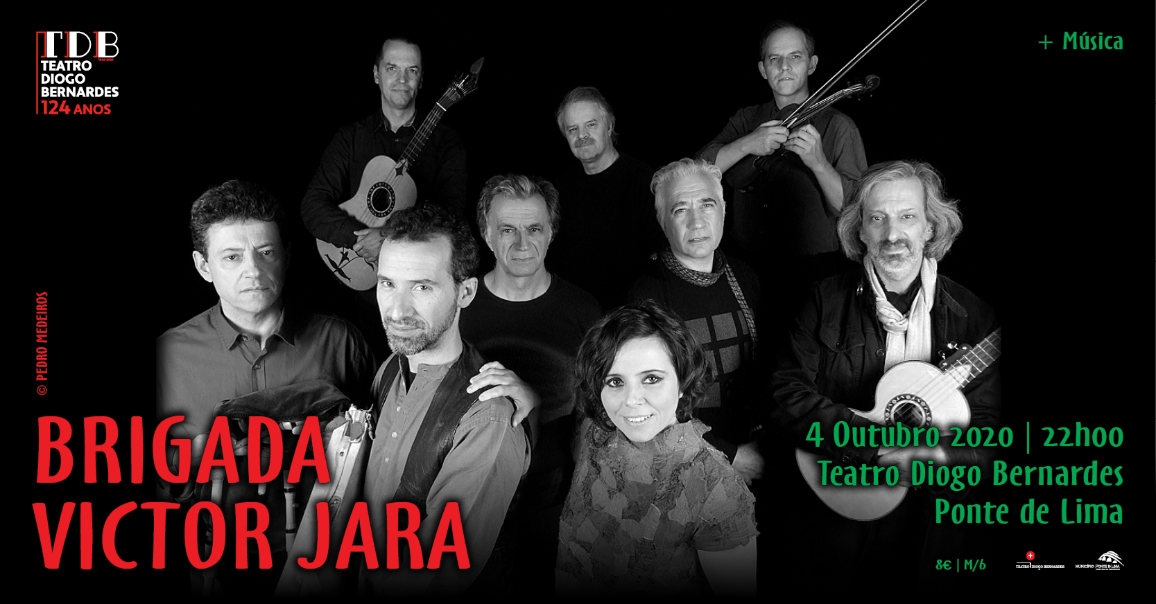 Os bilhetes (8,00€) serão disponibilizados a partir das 9h30 do próximo dia 25 de Setembro (sexta-feira), na bilheteira física do Teatro Diogo Bernardes e a partir das 14h00 na bilheteira electrónica (https://www.bol.pt/Comprar/Bilhetes/90869-brigada_victor_jara-municipio_de_ponte_de_lima/Sessoes)