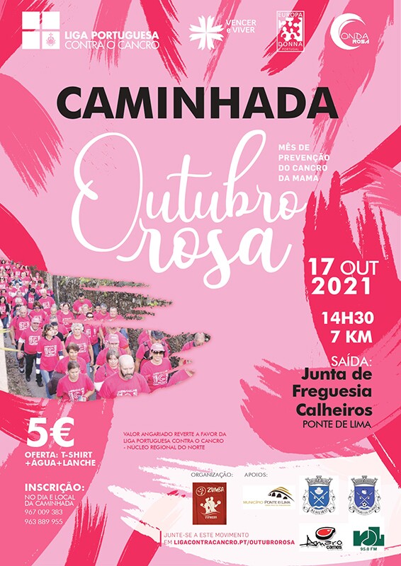 No dia 17 de Outubro, pelas 14h30, caminhada Solidária Contra o Cancro da Mama, com saída da Junta de Freguesia de Calheiros, organizado pela Zumba y Fitness - Centro de Motricidade de Calheiros.