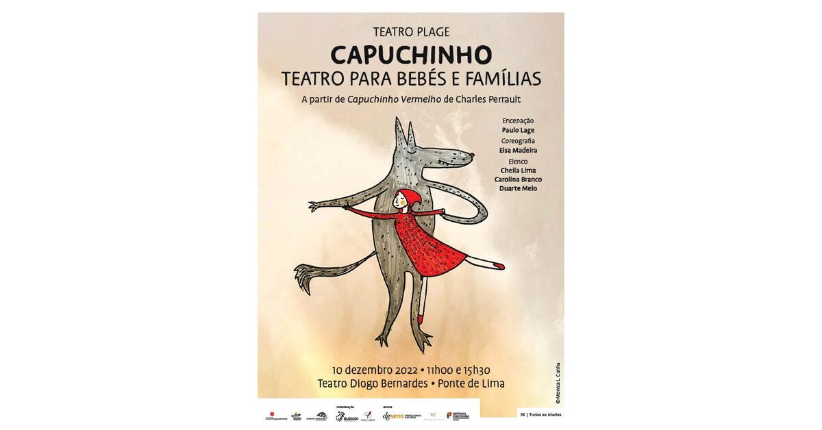 A 10 de dezembro de 2022, com duas sessões, às 11h00 e 15h30, o Teatro Diogo Bernardes em Ponte de Lima, apresenta o espetáculo de Teatro para Bebés e Famílias “O Capuchinho” a partir de Capuchinho Vermelho de Charles Perrault pelo Teatro Plage.