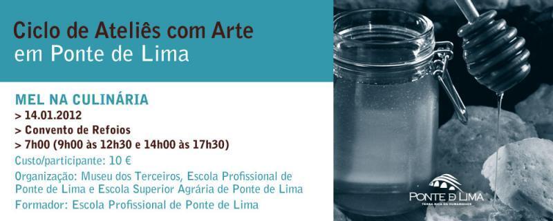 Realiza-se no dia 14 de janeiro, a quinta sessão do Ciclo de Ateliês com Arte, designada por Mel na Culinária. Mais informações ou inscrições podem ser obtidas através deste portal municipal ou pelos contactos: terra@cm-pontedelima.pt / 258 900 401.
