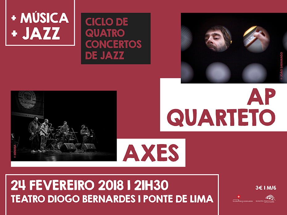A 24 de fevereiro, às 21h30, no Teatro Diogo Bernardes, em Ponte de Lima, AP Quarteto e Axes, concertos integrados no Ciclo de Concerto de Jazz a decorrer durante um fim-de-semana.