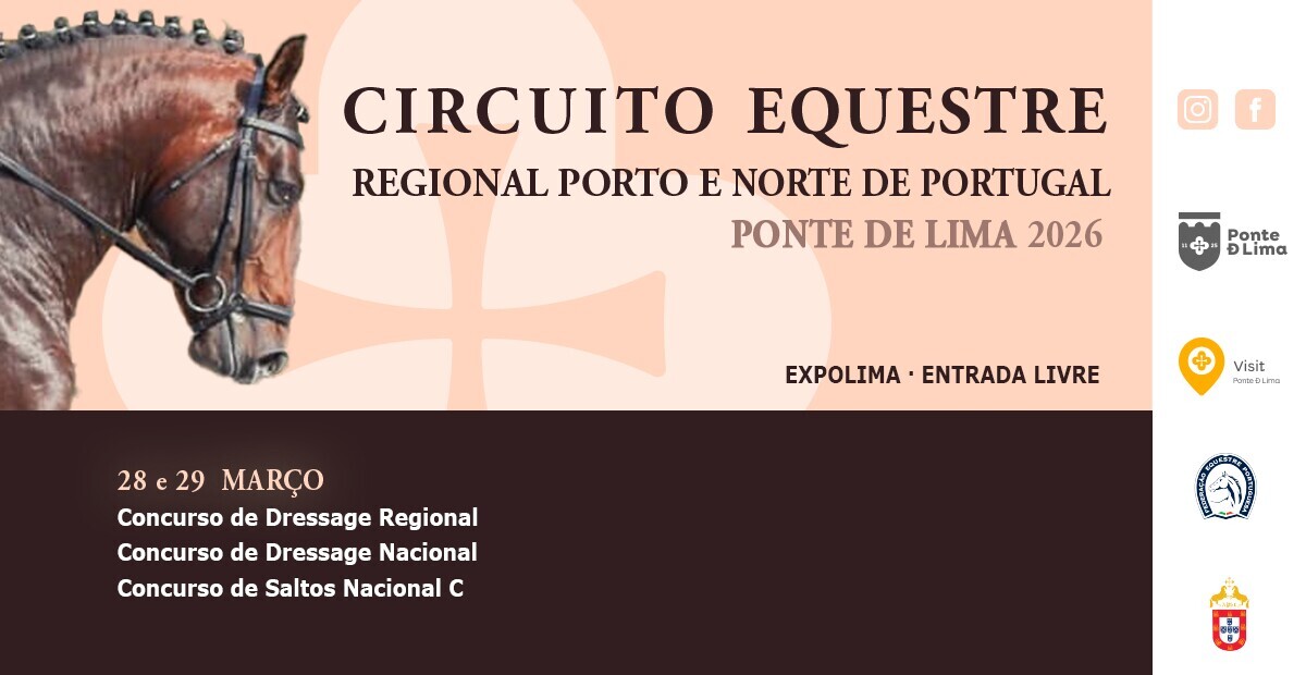 Integrado no Circuito Equestre Regional Porto e Norte de Portugal, realiza-se em Ponte de Lima, no fim de semana de 28 e 29 de março de 2025 o Concurso de Dressage Regional, o Concurso Dressage Especial e o Concurso de Saltos Nacional C.