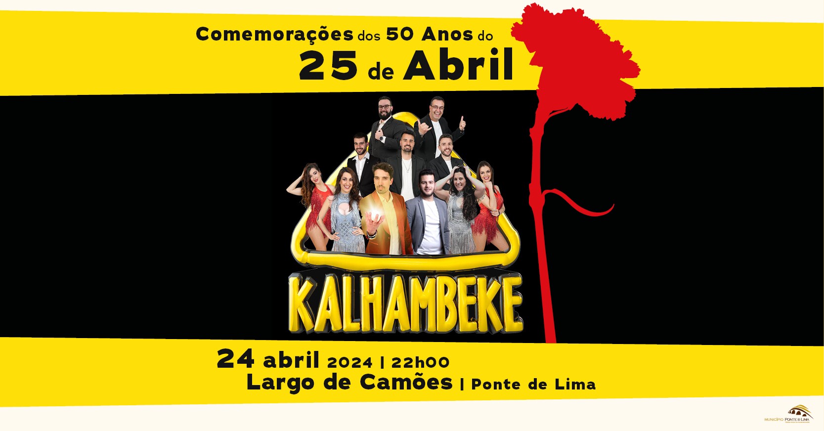 Inserido nas comemorações do 25 de Abril, Ponte de Lima recebe no dia 24 de abril, no Largo de Camões, pelas 22 horas, o espetáculo musical/baile pelo Grupo Kalhambeke, que proporcionará aos limianos e público em geral, que habitualmente visitam esta vila, um espetáculo cheio de alegria, cor e dinamismo.