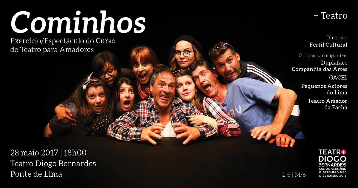 A 28 de Maio, às 18h00, no Teatro Diogo Bernardes em Ponte de Lima, Cominhos | Exercício / Espectáculo do Curso de Teatro para Amadores, promovido no âmbito dos Serviços Educativos do Teatro Diogo Bernardes, com direcção da Fértil Cultural e participação de elementos do Duplaface Companhia das Artes, GACEL, Pequenos Actores do Lima e Teatro Amador da Facha.
