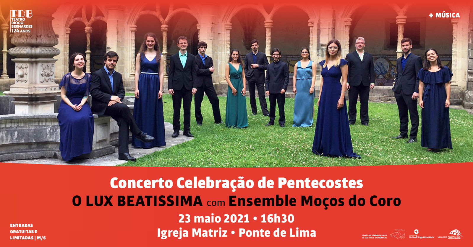 A 23 de maio, às 16h30, Concerto Celebração de Pentecostes "O LUX BEATISSIMA" com Ensemble Moços do Coro, na Igreja Matriz de Ponte de Lima.