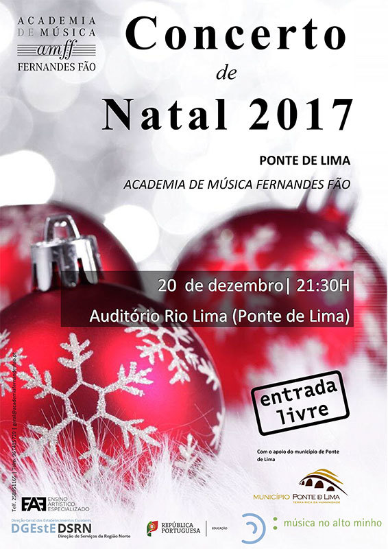 A 20 de dezembro, às 21h30, no Auditório Rio Lima, Concerto de Natal pela Academia Fernandes Fão.
