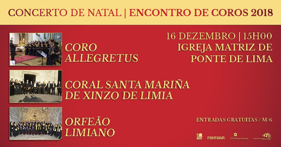 A 16 de dezembro, às 15h00, na Igreja Matriz de Ponte de Lima, Concerto de Natal - Encontro de Coros 2018, com a participação de: