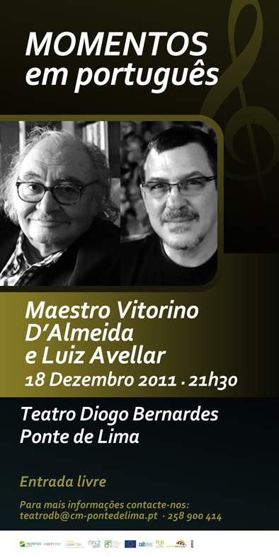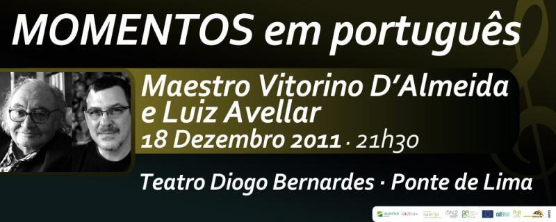 No âmbito da iniciativa MOMENTOS em Português, o Teatro Diogo Bernardes em Ponte de Lima apresenta, dia 18 de dezembro, um magnífico espetáculo musical com o Maestro Vitorino D'Almeida e Luiz Avellar.