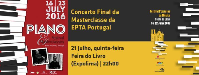 No contexto das actividades da EPTA Portugal / Associação de Pianistas e Professores de Piano a decorrer em Ponte de Lima durante o mês de Julho, com o apoio do Município de Ponte de Lima, oportunidade para assistir ao Concerto Final da Masterclasse da EPTA Portugal, num espectáculo inserido no programa da Feira do Livro de Ponte de Lima, no espaço do Restaurante Panorâmico da Expolima.