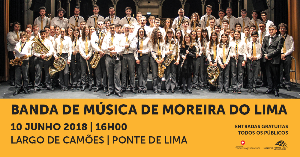 A 10 de junho, às 16h00, no Largo de Camões, com entradas gratuitas, Concerto pela Banda de Música de Moreira do Lima.