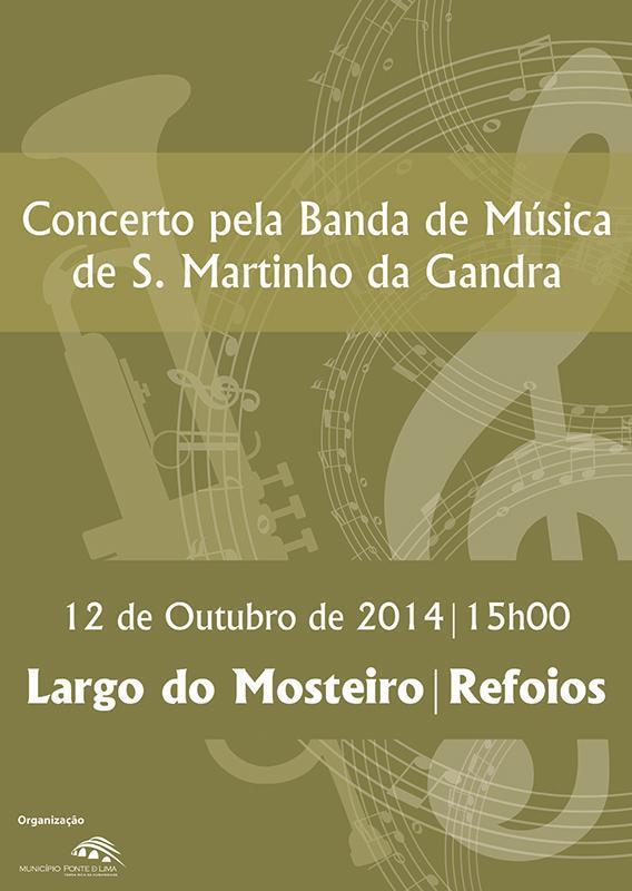 Concerto pela Banda de Música de S. Martinho da Gandra, dia 12 de outubro de 2015, pelas 15h00, no Largo do Mosteiro em Refoios. Espetáculo organizado pelo Município de Ponte de Lima.