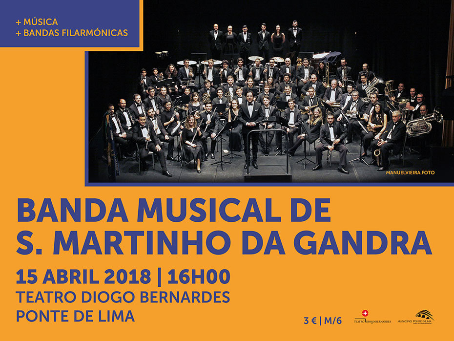 A 15 de Abril, às 16h00, no Teatro Diogo Bernardes, em Ponte de Lima, Concerto pela Banda Musical de S. Martinho da Gandra - terceiro de quatro concertos a realizar pelas Bandas Filarmónicas do Concelho de Ponte de Lima, no Teatro Diogo Bernardes, em 2018.