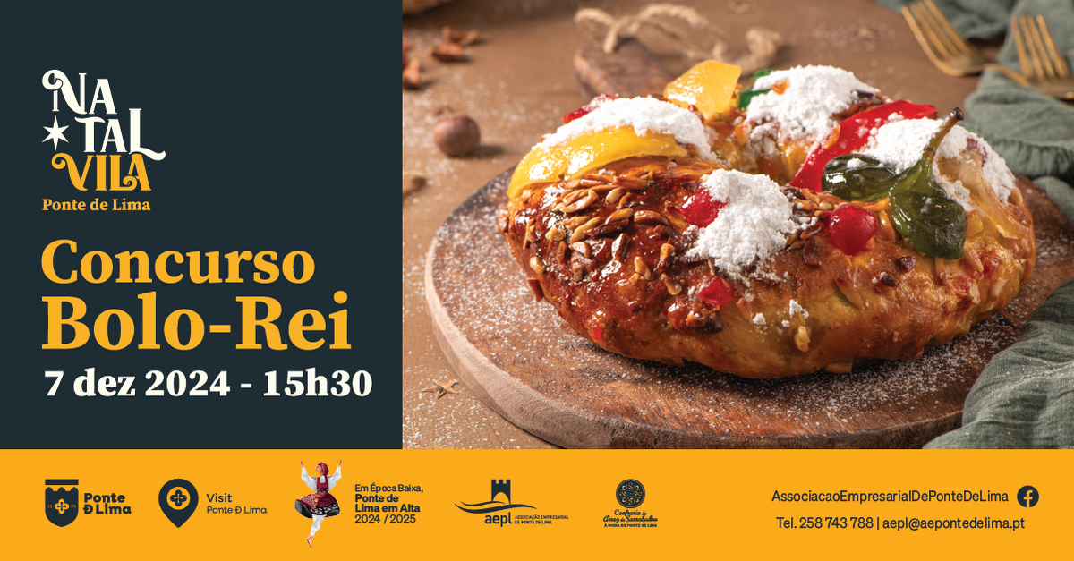 O Município de Ponte de Lima em parceria com a Associação Empresarial de Ponte de Lima e com a colaboração da Confraria do Sarrabulho à Moda de Ponte de Lima promove o concurso de Bolo-Rei, iguaria típica da quadra natalícia que se avizinha.