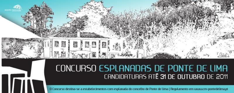 Encontra-se aberto o Concurso "Esplanadas de Ponte de Lima" destinado a todos os proprietários de estabelecimentos com esplanadas circunscritas no concelho, mediante o envio ou entrega da candidatura até ao dia 31 de outubro de 2011. Participe!