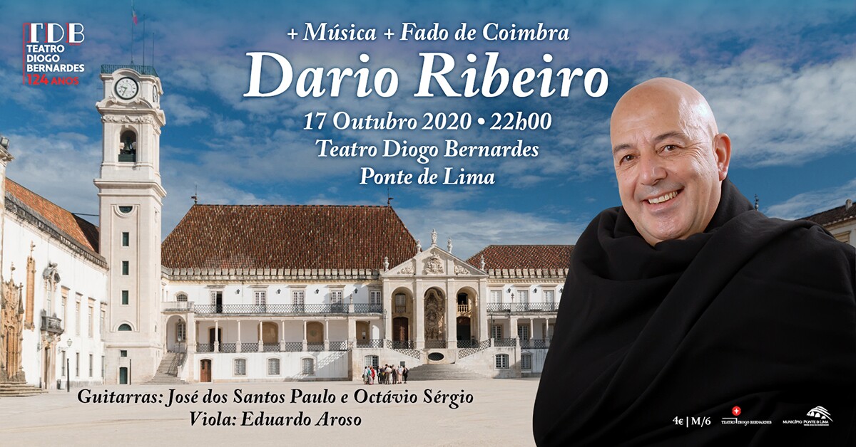 A 17 de outubro, às 22h00, no Teatro Diogo Bernardes, em Ponte de Lima, Dario Ribeiro, na voz, acompanhado por José dos Santos Paulo e Octávio Sérgio, nas guitarras e Eduardo Aroso, na viola, apresenta Fado de Coimbra.