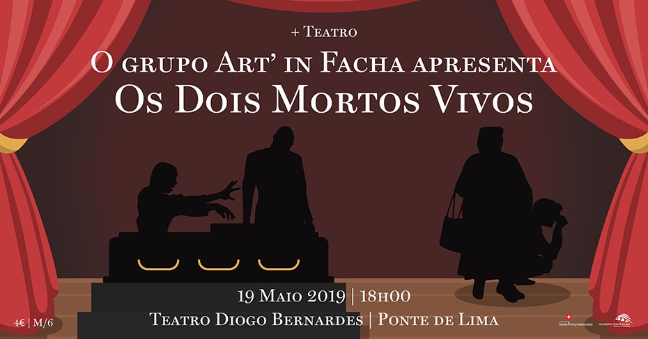 A 19 de maio, às 18h00, o Grupo de Amadores de Teatro Art'In Facha, de Ponte de Lima, apresenta, no Teatro Diogo Bernardes, em Ponte de Lima, o espectáculo Os Dois Mortos Vivos.