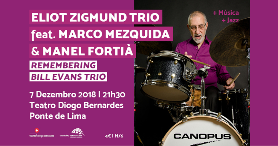 A 7 de dezembro, às 21h30, o Teatro Digo Bernardes, em Ponte de Lima, apresenta mais uma lenda do Jazz - Eliot Zigmund Trio feat. Marco Mezquida & Manel Fortià: “Remembering Bill Evans Trio”.