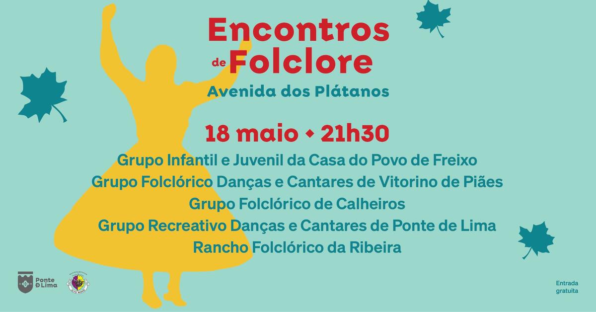 A 18 de maio de 2024, às 21h30, na Avenida dos Plátanos, Encontro de Folclore com os grupos: