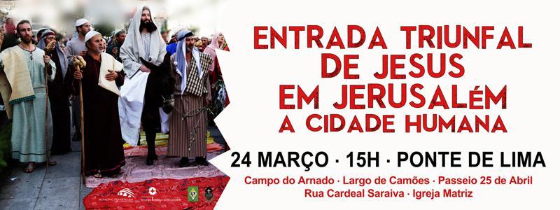 Realiza-se no dia 24 de março, entre as às 15 e as 17 horas, em Ponte de Lima a Entrada Triunfal de Jesus em Jerusalém a Cidade Humana. Trata-se de uma representação alusiva ao Domingo de Ramos, com cinco quadros e um elenco composto por cerca de...