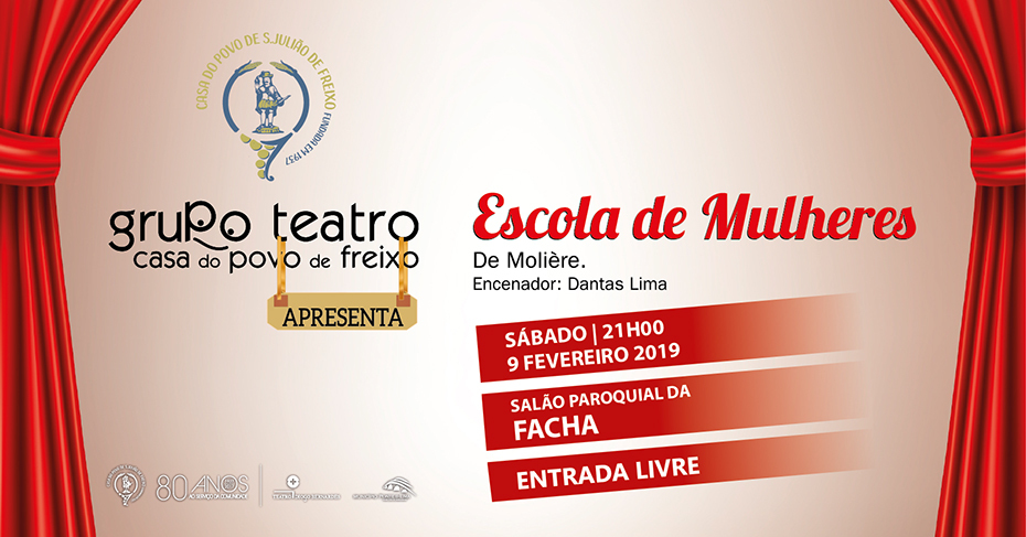 A 9 de fevereiro, às 21h00, no Salão Paroquial da Facha, com entradas gratuitas, Escola de Mulheres, de Molière, pelo Grupo de Teatro da Casa do Povo de Freixo.