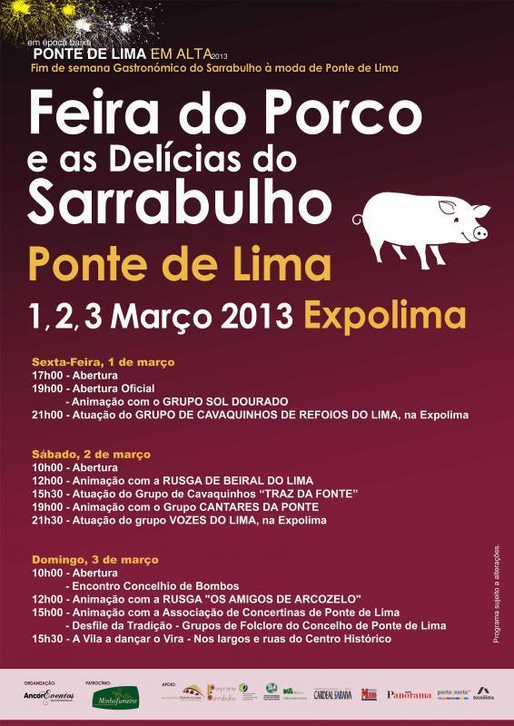A 5ª edição da Feira do Porco e as Delícias do Sarrabulho de Ponte de Lima realiza-se de 1 a 3 de março, na Expolima. Tem como principal objetivo aumentar a afluência em termos turísticos, nomeadamente ao turismo gastronómico, promovendo o...